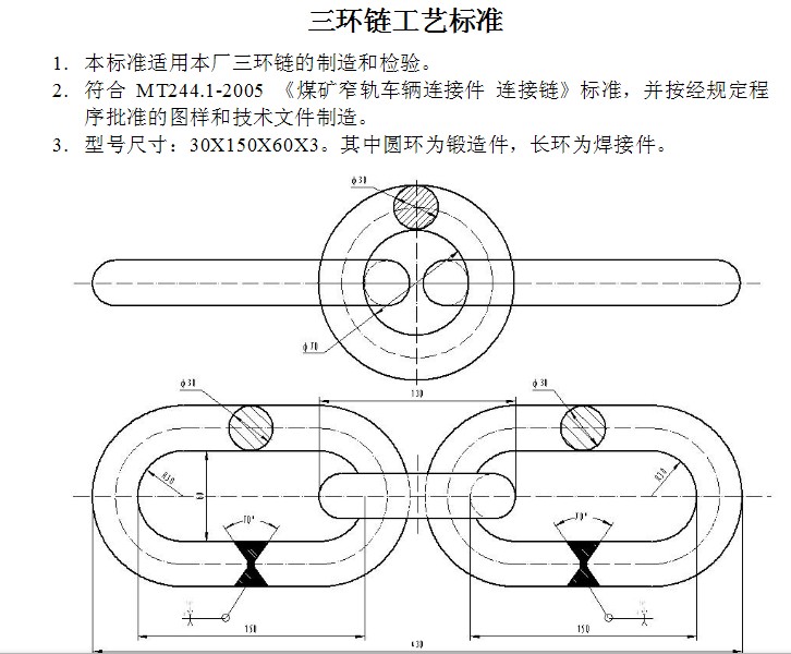 礦車三環鏈適用于運輸煤炭、矸石、物料等各類礦車和林業木材運輸聯接,在符合《煤礦保安規程》的前提下也適用于礦山人的聯接